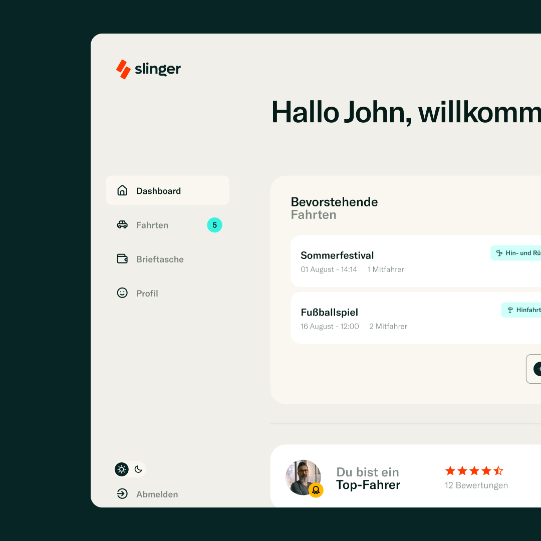 Unsere Plattform verfügt über ein Widget, das Ihre Teilnehmenden vernetzt, über Benutzerkonten, mit denen sie ihre Fahrten verwalten können, und über ein Dashboard, das Ihnen wertvolle Einblicke bietet.