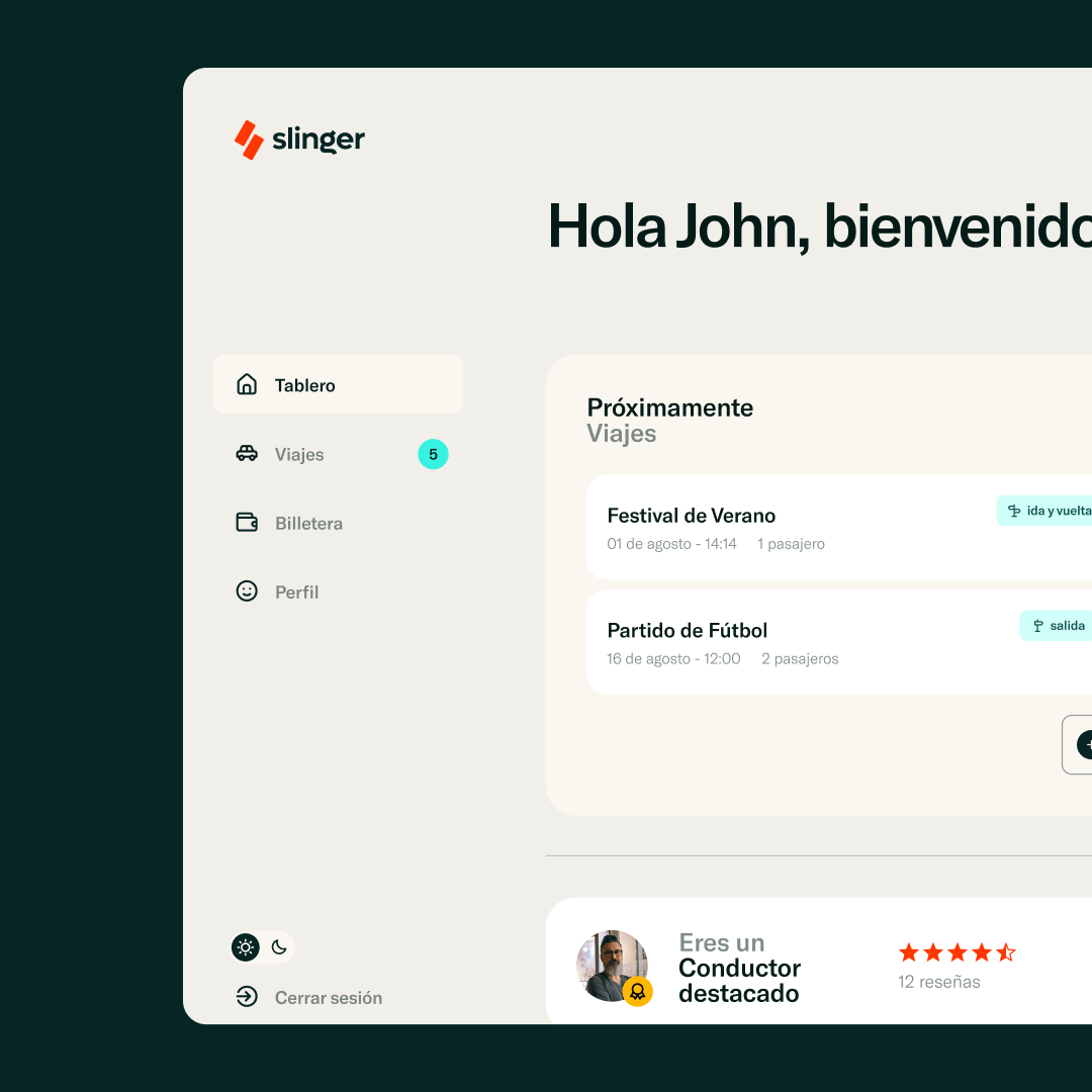 Nuestra plataforma cuenta con un widget que conecta las cuentas de usuario de tus asistentes para que puedan gestionar sus trayectos y un panel de control que te proporciona información valiosa.