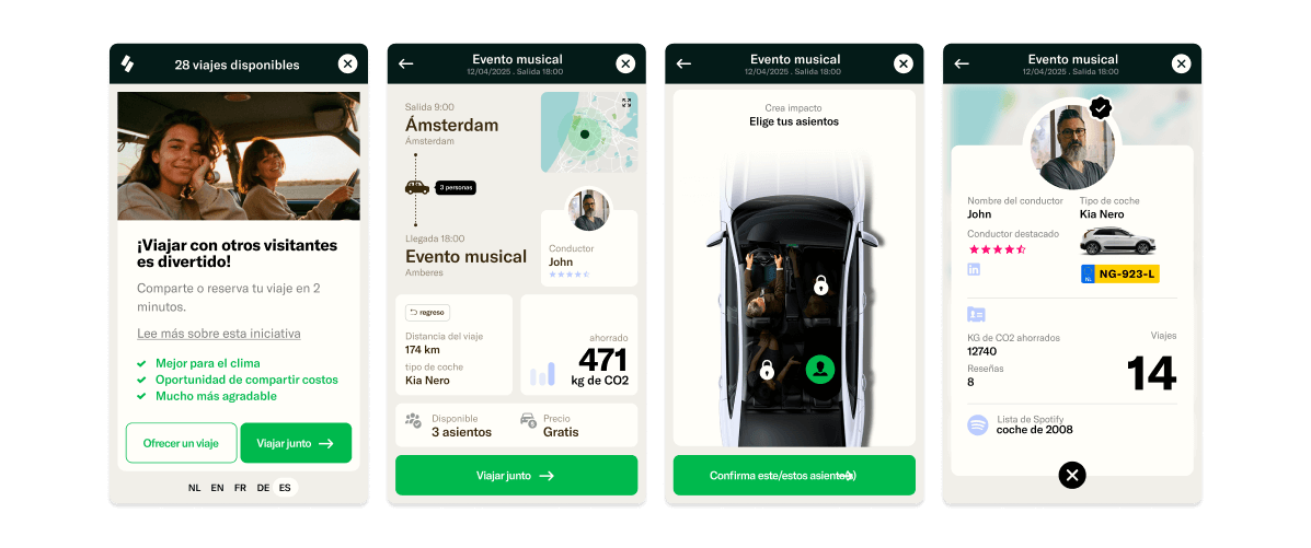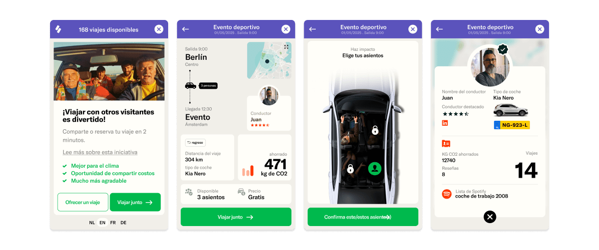 Compartir un viaje a un evento es más que un simple trayecto; es toda una experiencia. Ya sea para hacer networking o disfrutar juntos de la emoción previa al espectáculo, el viaje pasa a formar parte del evento. Un sistema de correo electrónico y teléfono verificado garantiza un viaje compartido confiable.