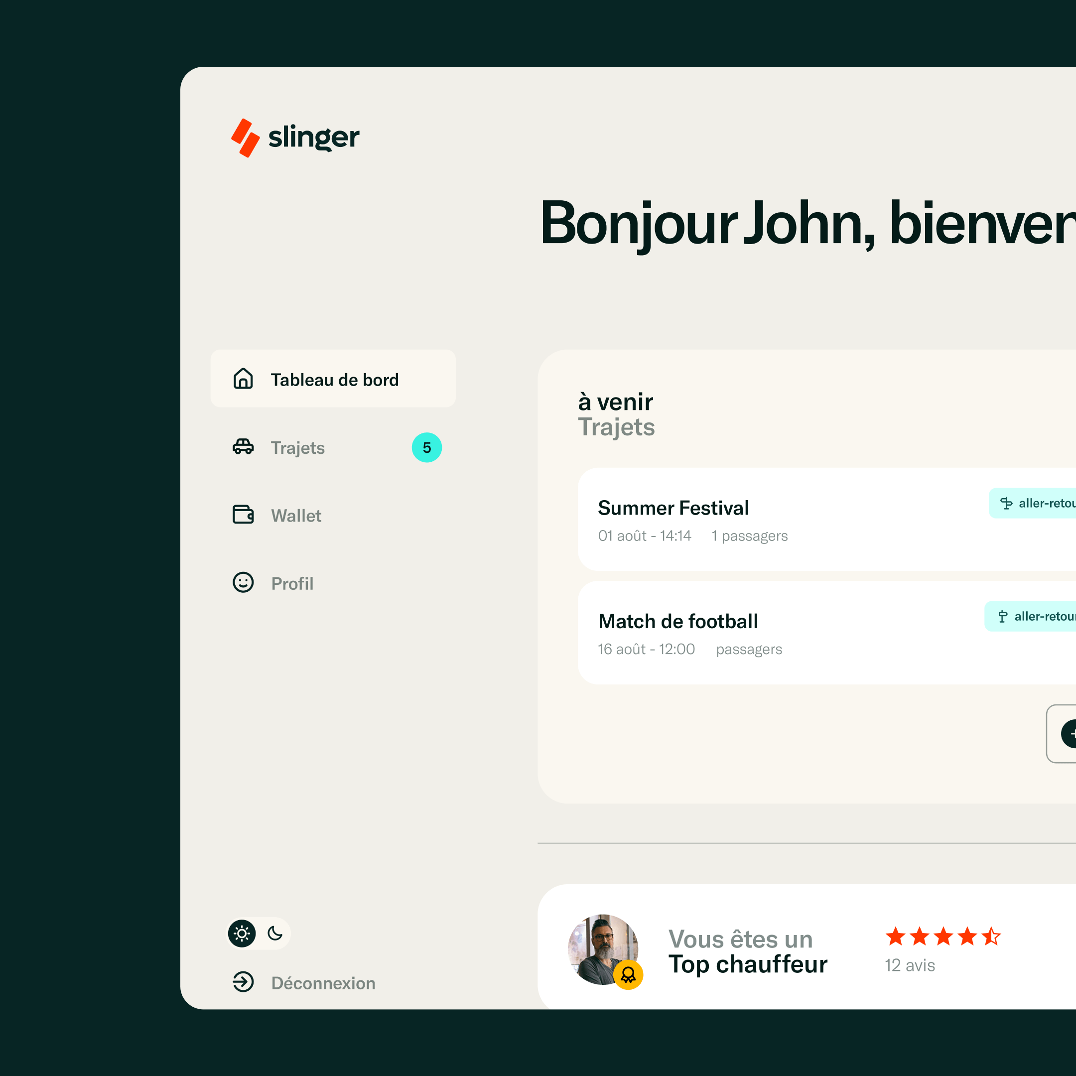 Notre plateforme propose un widget qui connecte vos participants, des comptes utilisateurs pour gérer leurs trajets et un tableau de bord qui vous fournit des informations précieuses.