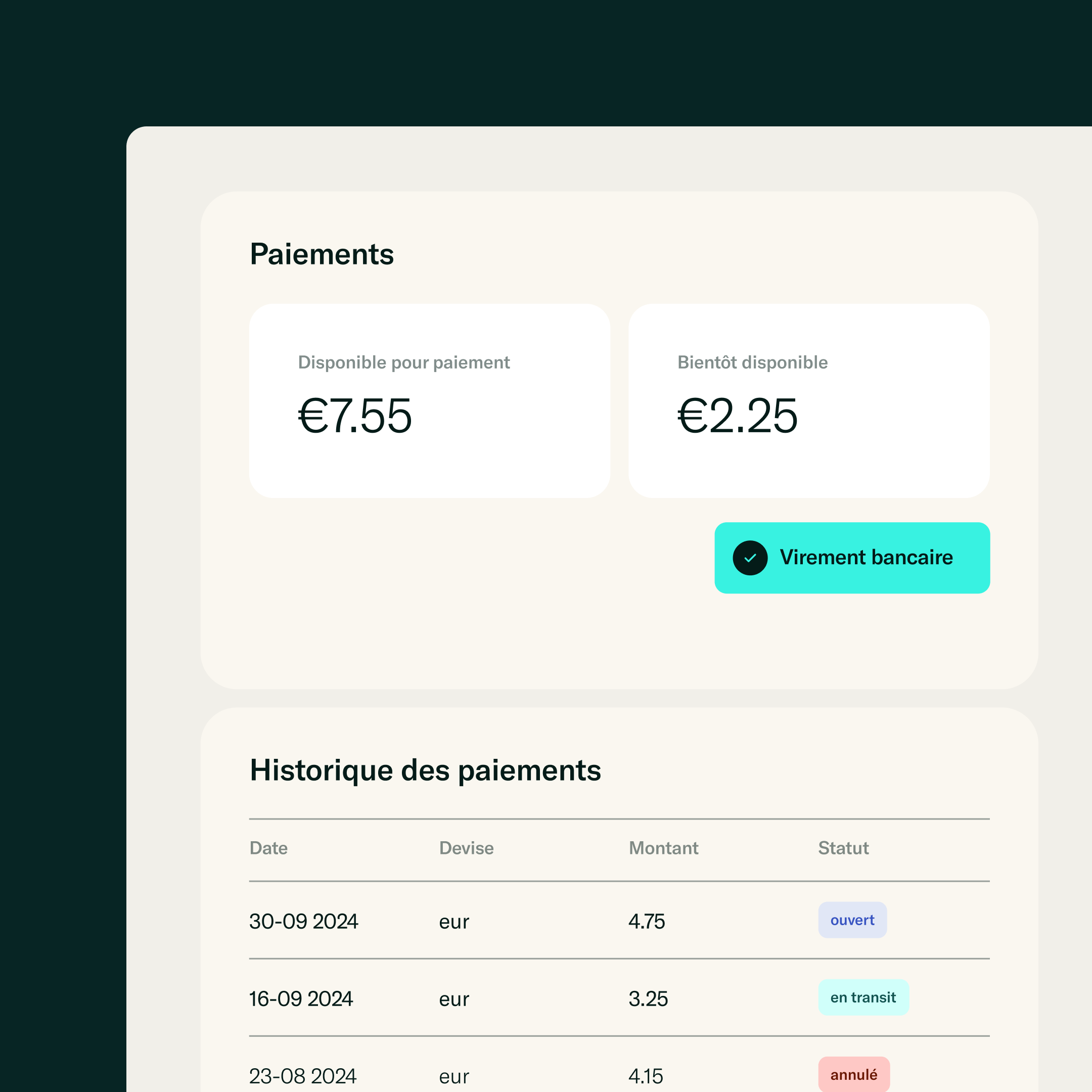 Les conducteurs peuvent définir un tarif équitable pour leur trajet, et les passagers paient facilement via notre système sécurisé alimenté par Stripe. Il prend en charge plusieurs devises (EUR, GBP, USD) et des méthodes de paiement populaires comme iDEAL, Mastercard et Visa.